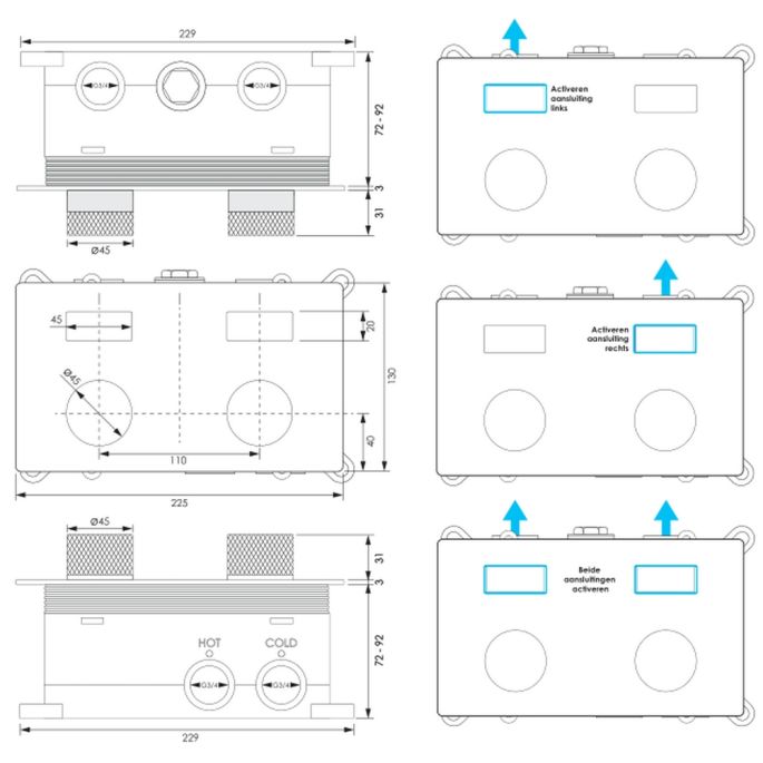 - Waterverbruik handd. 3-standen bij 3 bar: 7 L/min