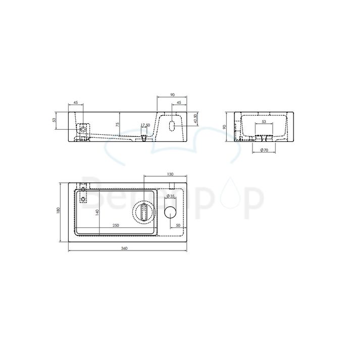 Clou Flush 3 CL0312030 keramiek fontein mat zwart 36cm met kraangat met plug rechts
