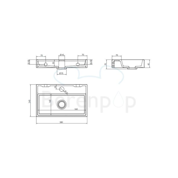 Clou Mini Wash Me CL0308130 mineral marmer fontein wit 38cm met voorbewerkt kraangat zonder plug. Wandhangend en als opzetfontein te monteren.