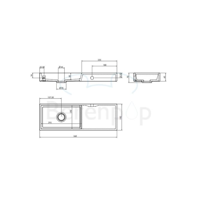 Clou Mini Wash Me CL0312241 keramiek fontein mat zwart 56cm zonder kraangat zonder plug rechts Wandhangend en als opzetfontein te monteren.