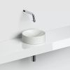Vale fontein, zonder kranenbank, met geïntegreerde afvoer, mat wit keramiek. Enkel als opzetfontein te monteren. Niet afsluitbaar.Â