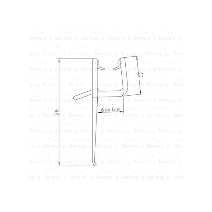 6mm horizontaal recht glas strip met 2 flap