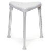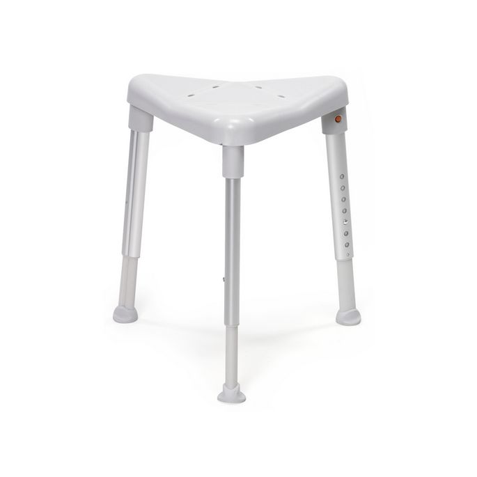 De driehoekige Edge past perfect in een hoek van de douche en neemt daarbij bijzonder weinig ruimte in. Zowel de douchekruk als de gebruiker kunnen hierbij tegen de muur steunen hetgeen de Edge tot een bijzonder stabiele oplossing maakt. De grote en zachte vloerdoppen verzekeren u van een goede grip op de vloer. De Edge is in hoogte instelbaar zodat voor iedereen de juiste zithoogte bereikbaar is.
