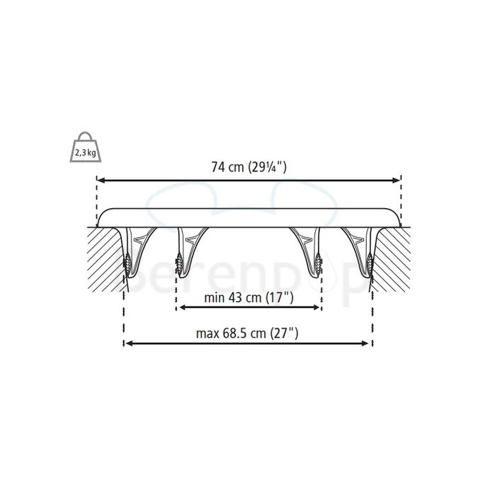 Aanpasbaarheid, hoek montageproppen: max. 68,6 cm / min. 43,2 cm
